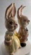 Vintage rabbit figurines dressed in yellow and brown. Perfect for home decor. Both rabbits shown in images/video are for this listing. Call outs are shown in images/video.