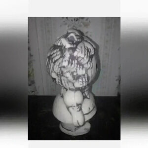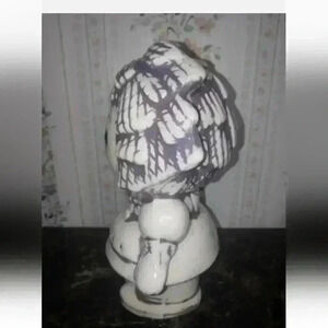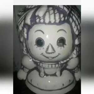 Vintage Porcelain Raggedy Ann Figurine Purple & White 7in. Tall. Some of the black paint is chipping off one of the eyes & some scratch marks on face (you can see in pic). In good condition otherwise.