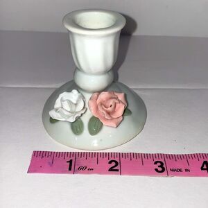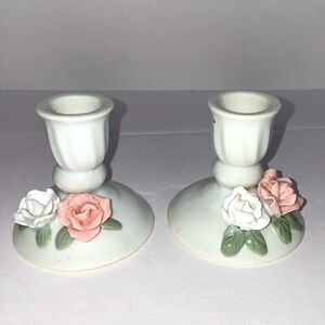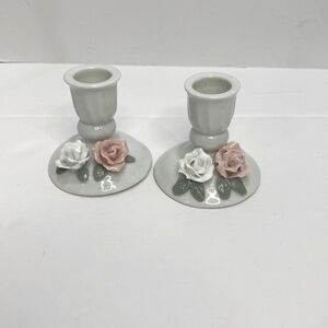 Vintage Porcelain Small Candle Stick Holders With Hand Painted Rose Design