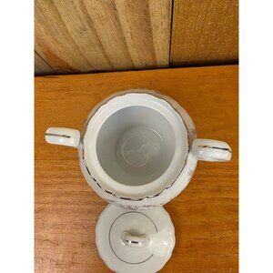 Vintage Porcelain Sugar Bowl With Lid & Floral Pink Rose Design