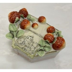 Vintage Porcelain Trinket Box Strawberry Lidded 3D Fruit Castle Raised Etching