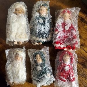 Vintage Porcelain Victorian Christmas Tree Ornament Dolls NIB Complete 8 pieces