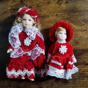Vintage Porcelain Victorian Christmas Tree Ornament Dolls