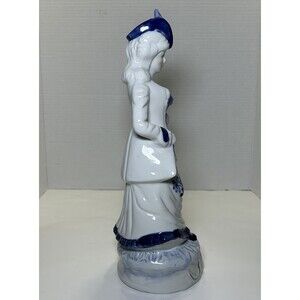 This vintage porcelain Victorian Martha Washington figurine features a white and blue color scheme, standing at a height of 12.5 inches. The glossy finish and Victorian style add to its charm, making it a beautiful decorative collectible piece for any home. With a classic design and elegant craftsmanship, this figurine captures the essence of the historical figure in a timeless and elegant display.