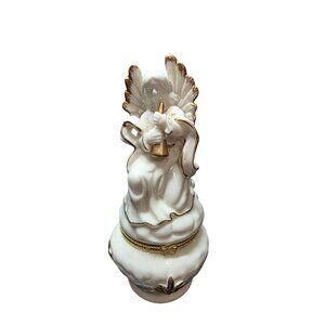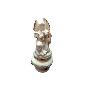 Standing around 6" tall. White Porcelain Angel with Musical Instrument Trinket Box Outlined in Gold. In good condition no cracks or chips. Open to reasonable offers and bundle deals