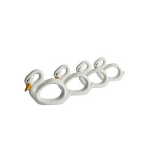 Add a touch of vintage charm to your table with this delightful set of four porcelain ceramic white swan napkin rings. Crafted in Taiwan, these charming pieces evoke a whimsical elegance, perfect for elevating everyday meals or special occasions.
