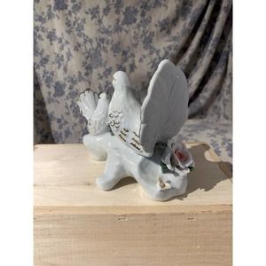 Vintage Porcelain White and Gold Love Doves on Floral Branch