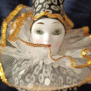 Porcelain Doll Jester Clown Face Pincushion,Vintage Collectible Harlequin 5.50" Tall