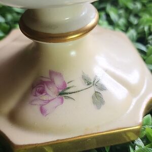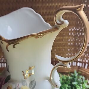 Vintage Porcelain Floral Pitcher Vase With Gold Tone Accent Coquette Bridal