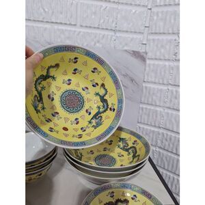 Vintage porcelain made in China. Bright yellow, dragon motif and exquisite detail. Set includes 32 Pieces.