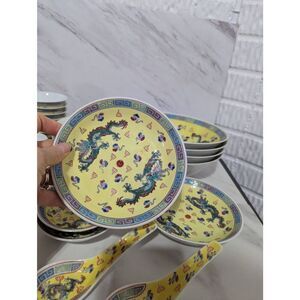 Vintage Porcelain Made In China Yellow Dragon 32 Piece Luncheon Set