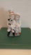 The figurine depicts a couple with the female holding a cat. The male is wearing a top hot, smoking a pipe, and holding an umbrella. The female has a head scarf on and a ruffled skirt or dress.