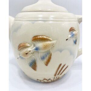 Vintage Porcelier Tea Pot Ducks Flying Vitreous China Lake Cattails Made in USA