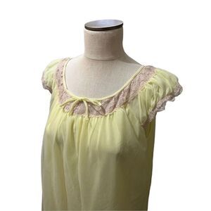 Vintage Porette Yellow Lace Baby Doll Sheer Layered Nightgown Lingerie Retro L