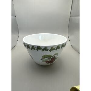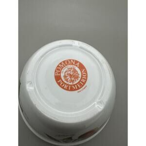 This vintage serving bowl by Portmeirion features a beautiful Pomona pattern on a round shape, adding an English Country style to any table setting. The bowl is made of glossy ceramic material and measures 7 inches in width and 4 inches in height. The bowl is an original piece from the late 20th century (1970-1999), and is in excellent condition. It is recommended to hand wash only, making it a perfect addition to any collection of decorative cookware, dinnerware, and serveware. Add a touch of elegance to any occasion with this multicolor Pomona serving bowl.