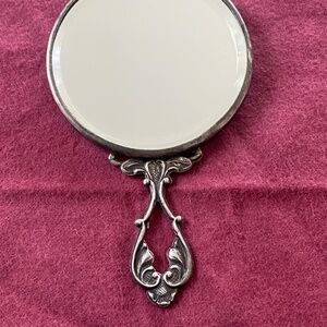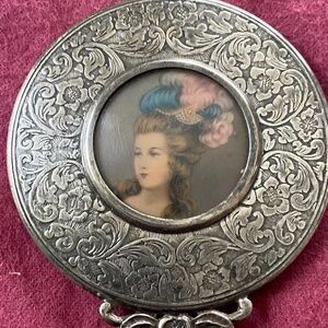Vintage Victorian style Portrait of Woman Silverplate Hand Mirror, approx 4.5 x 3"W.