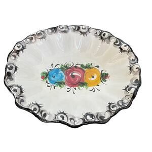 Vintage Portugal Pottery Pitcher & Bowl Plate Vestal Alcobaca Hand Painted Farm