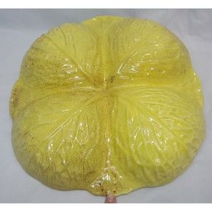 Vintage Portuguese Majolica Cabbage Leaf Yellow Divided Platter As Pictured
