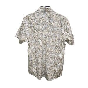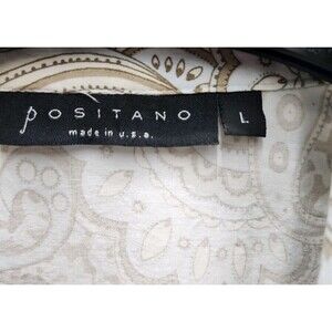 Vintage Positano Button Up Shirt Mens Large Blue Tan Paisley All Over Print USA