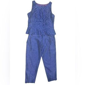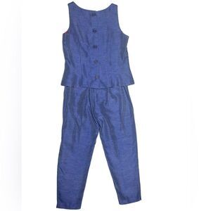 Vintage Positive Attitude Blue Two Piece Set Outfit Matching Top and Bottom Size 8 Sleeveless Top High Rise Pants High Waisted