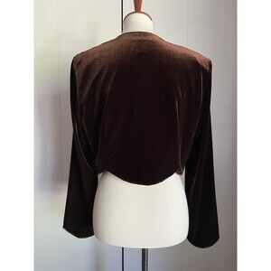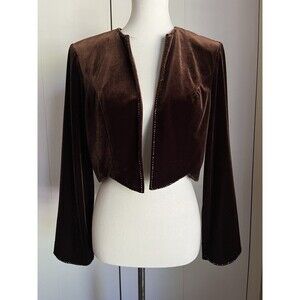 Vintage Positive Attitude Brown Velvet Cropped Jacket Women’s Size 10 Open Front