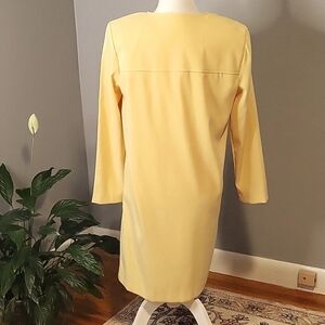 Vintage Positive Attitude yellow button-down dress with decorative buttons and shoulder pads in Size 8.