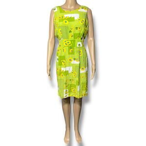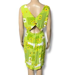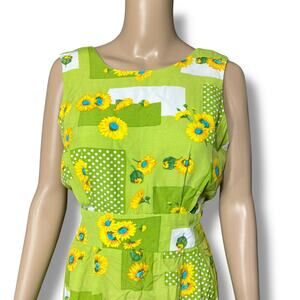 Vintage Positive Attitude Womens Dress Sunflower Floral Print Open Back 10P