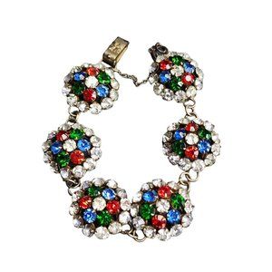 Details: Clasps have wear. All original, with a little verdigris on the bracelet.