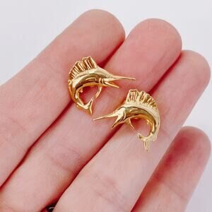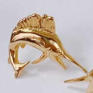 Vintage Post Earrings Marlin Fish Nautical Coastal 80s 90s Gold Tone Swordfish