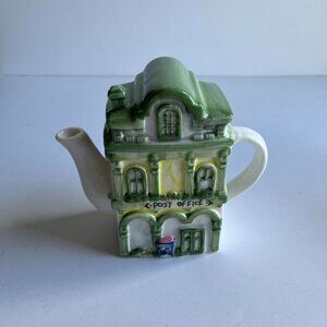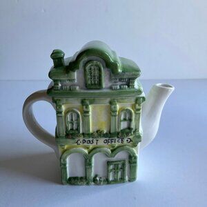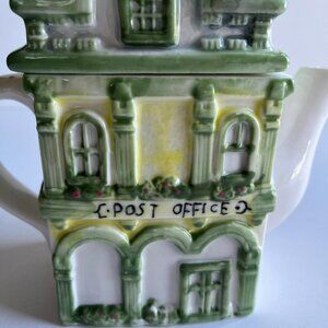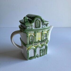 Discover a delightful piece of vintage kitschy decor with this vintage post office teapot. In excellent vintage condition, this charming teapot takes the shape of a quaint post office building, complete with charming details. It's not just a teapot; it's a unique and heartwarming gift for postal workers or any tea lover in your life. Add a touch of nostalgia and functionality to your decor with this exceptional find.