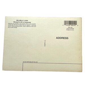 A collectible postcard showcasing vintage humor with a rural Arkansas theme, made in the USA. Durable with bright design for collectors.