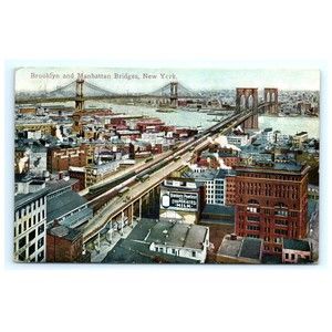 Vintage Postcard Brooklyn and Manhattan Bridges New York City NY Posted 1911