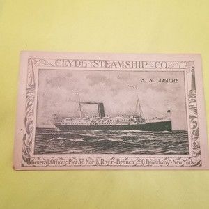 Vintage Postcard Clyde Steamship Co. S.S. Apache