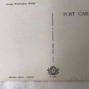 This authentic vintage postcard features the iconic George Washington Bridge, captured in Lumitone Prolacprint by Brown Bros. A classic piece of New York history, it's printed on durable cardstock in standard postcard size.