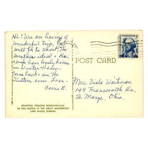 Vintage Postcard Great Masterpiece With Crimson Bougainvillea Lake Wales Florida