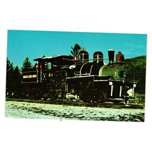 This vintage postcard features the historic Lima Shay Geared Locomotive, once used in early 1900s logging operations. Excellent restoration showcased at Clark’s Trading Post in New Hampshire.