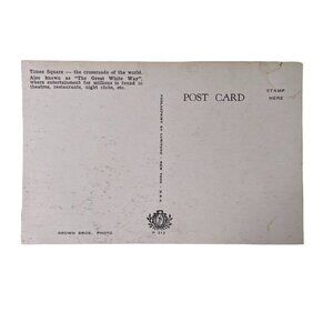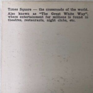 This Vintage Postcard from New York is a standard-sized cardstock representation of Times Square's Great White Way Cityscape. Authentic, detailed, and stylishly vintage.