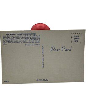 A collectible postcard showcasing the World's Tallest Christmas Tree in Indianapolis, featuring vibrant night lights and festive details. A timeless keepsake.