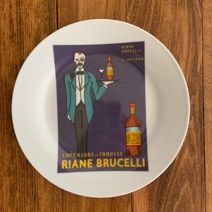 Cute vintage poster design, each plate is unique. Measurements: 7 1/2". Each plate is in pristine, unused condition with sticker still on back. Box shows signs of wear. Great for dessert, salad or wall display.