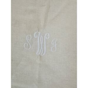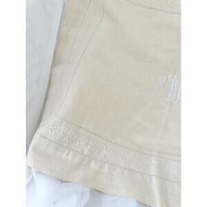 Vintage Pottery Barn Linen Cotton Pillow Shams Ecru Beige embroidered monogram