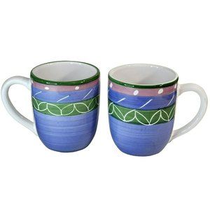 Vintage Pottery Barn Set Of 2 Hand Painted Ceramic Coffee Mug Made in Italy