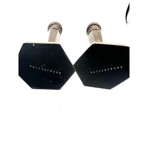 Pottery Barn Silver Pillar Candle Stick Holders Hexagon Heavy Set 9.5 Inches