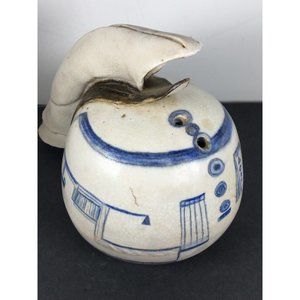 Vintage Pottery Ceramic Porcelain Blue & White Hand Painted Container Signed