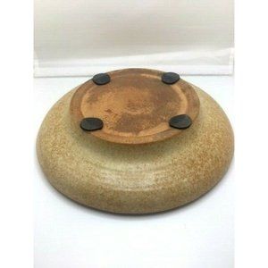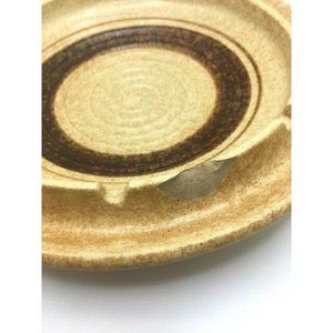 Beautiful large glazed clay ashtray/trinket dish. This item is well made and has a beautiful symmetrical swirl design in the center accented by a dark brown band. If not used as an ashtray, it could easily be used as a trinket tray, a dish, or simply as a decorative pottery piece. You will love it as an addition to your pottery collection.!
