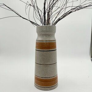 Vintage Pottery Craft Vase With Orange & Brown Stripes