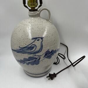 Vintage Pottery Large Table Lamp Salt Glazed Stoneware Crock Jug Light Birds