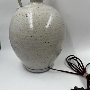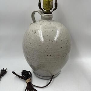This handmade lamp is corded electric and has a brown cord color. The lamp is produced using the art pottery technique and is signed by the brand Unmarked. It is a vintage piece with a model name Table Lamp Salt, perfect for adding an antique touch to your collection. The lamp is suitable for any room and will be a great addition to your pottery and glass collection.