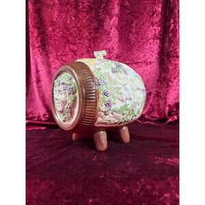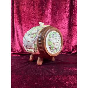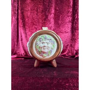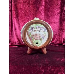 Vintage Pottery Mid Century Wine Barrel Keg Decanter Putti, Bacchus, Goat Relief