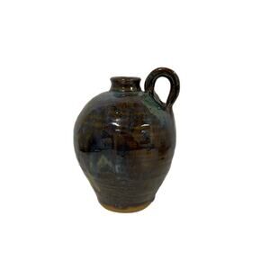 Add a touch of rustic charm to your home with this vintage pottery moonshine/water jug pitcher! This beautiful piece features a classic brown glaze and a traditional design. Perfect for display, it's sure to be a conversation starter.