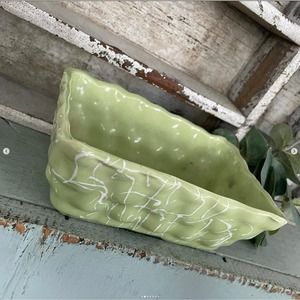Vintage Pottery Planter Pale Green White Spatterware Scallop Rim Rectangular